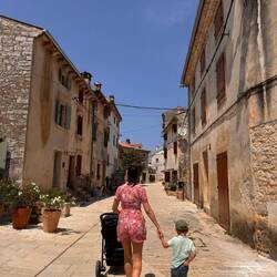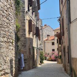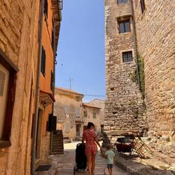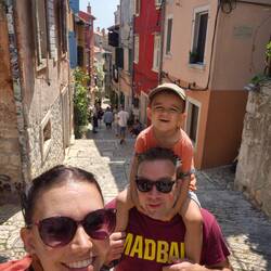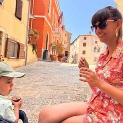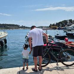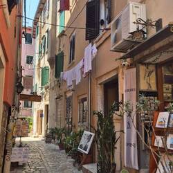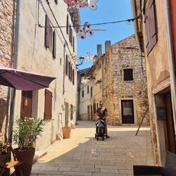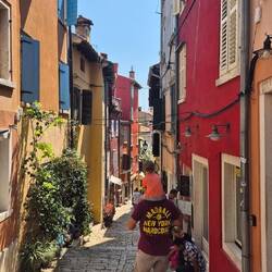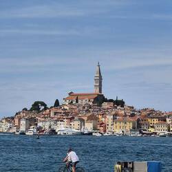 Heute Morgen sind wir mit dem Fahrrad nach Rovinj gefahren, die Stadt anschauen, bummeln, lecker essen.