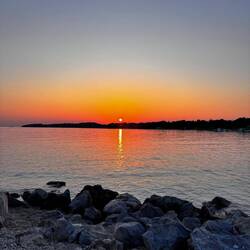 Am Nachmittag sind wir von Rovinj zurück gekommen und direkt wieder an den Strand. Gegen 21 Uhr konnten wir da endlich einen Sonnenuntergang ohne Wolken sehen.