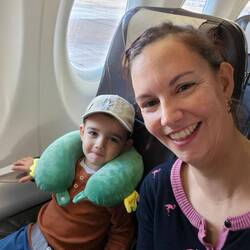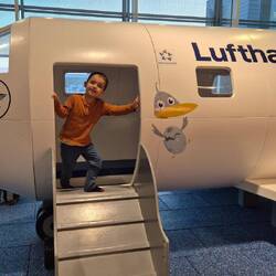 Um 6 Uhr wurden wir am Hotel abgeholt, check in und die Sicherheitskontrolle gingen richtig schnell. Am Spielplatz hat Phil sich noch ein bisschen ausgepowert und Pilotenluft geschnuppert 🥰🛩
