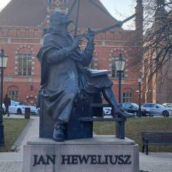 Tributo al celebre astronomo Jan Heweliusz (1611–1687), cittadino di Danzica e fondatore della topografia lunare.
