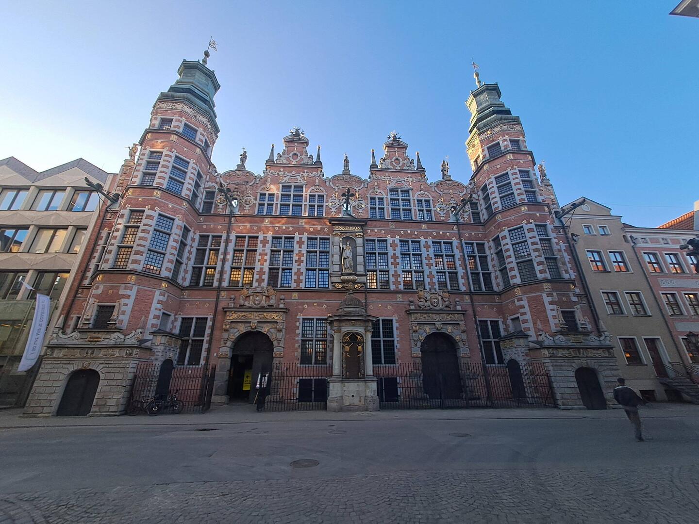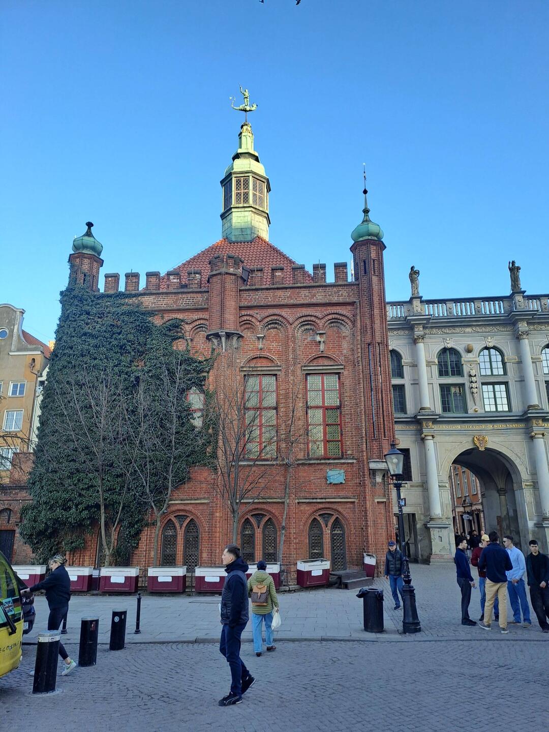 L'edificio nella foto è lo Żuraw (Gru di Danzica), uno dei monumenti più iconici di Danzica, in Polonia. Si tratta della più antica e grande gru portuale medievale conservata in Europa.