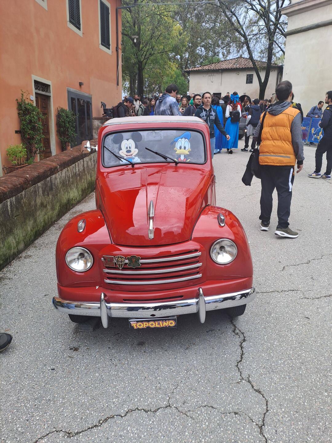 L'auto raffigurata è una Fiat 500 "Topolino", un'utilitaria prodotta dalla casa automobilistica italiana FIAT tra il 1936 e il 1955.