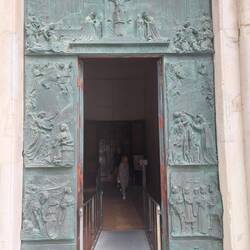 La basilica è meta di pellegrinaggio perché ospita una reliquia che secondo la leggenda sarebbe il velo della Veronica (Volto Santo di Manoppello).