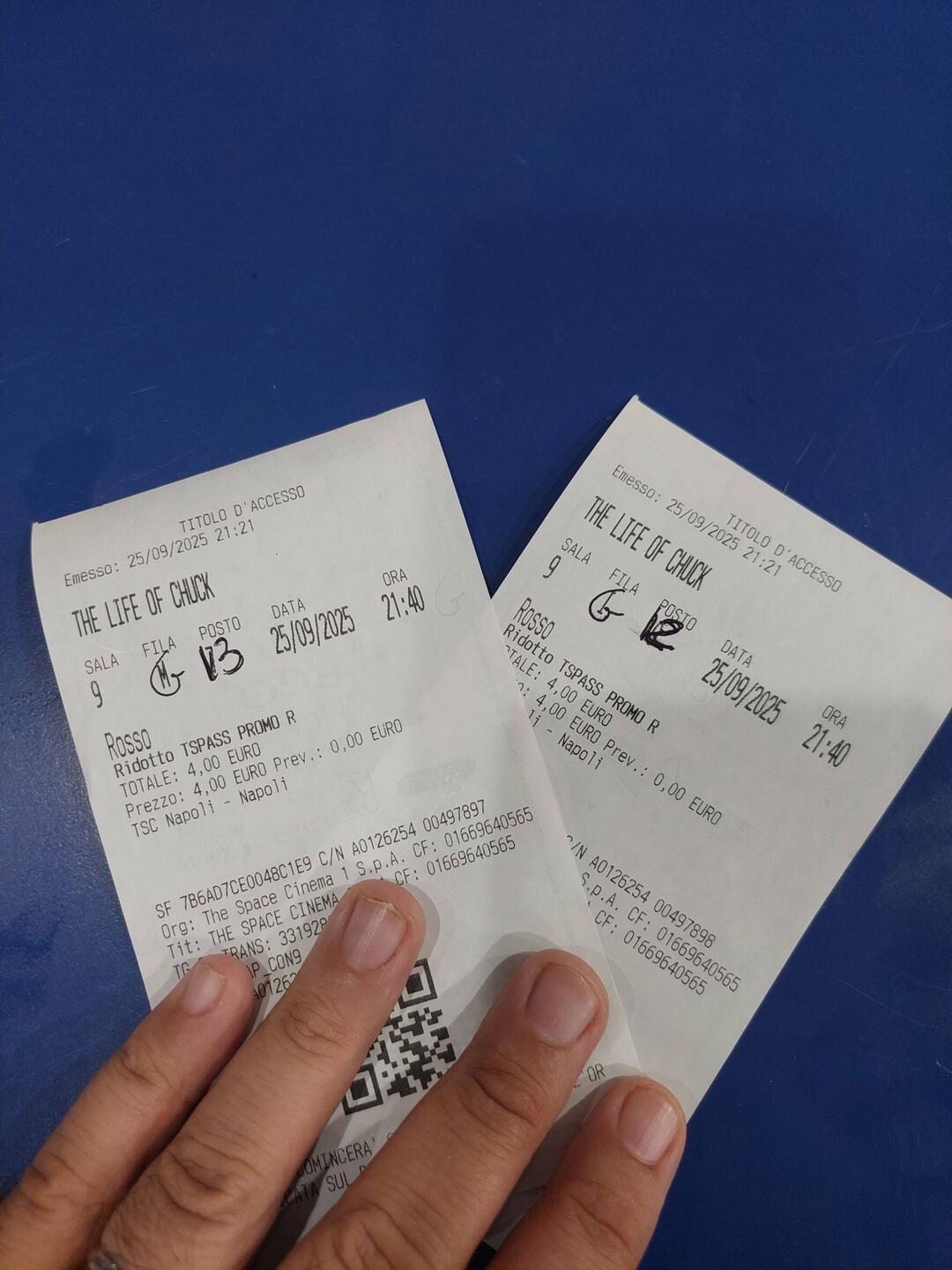 Serata CinemaTravelerShow tripAdd to bucket listRemove from bucket listShareDay 1Thursday, September 25, 2025 at 8:06 PM 🌙 20 °C Altitude: 48 m ItalyNapoli40.827221, 14.20590140°49’38” N 14°12’21” EAddo figl e Marì September 25 in Italy ⋅ 🌙 20 °C 2 likes Serata CinemaTravelerShow tripAdd to bucket listRemove from bucket listShareDay 1Thursday, September 25, 2025 at 9:25 PM 🌙 20 °C Altitude: 21 m ItalyNapoli40.822068, 14.17737340°49’19” N 14°10’39” EThe life of Chuck September 25 in Italy ⋅ 🌙 20 °C 2 likes Trip endSeptember 25, 2025