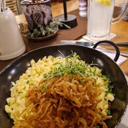 Es gab Kaiserschmarrn, Pommes und Germknödel, sowie Cola, Fanta und Almdudler!