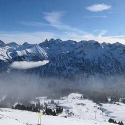 Wir kommen ziemlich genau um 09:00 Uhr an der Talstation der Fellhornbahn an.