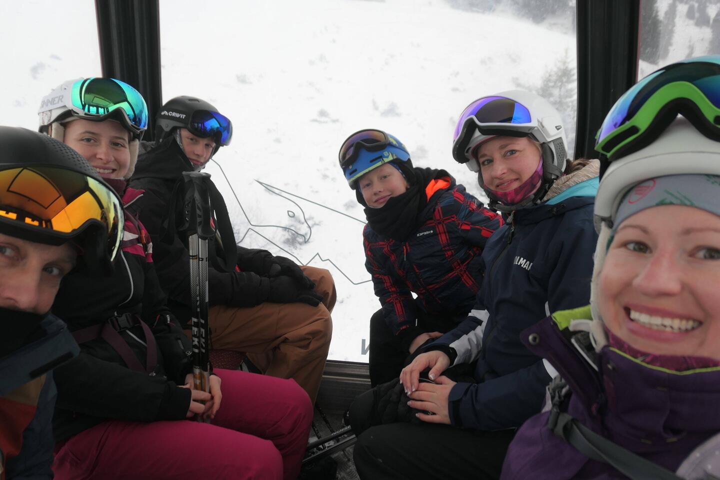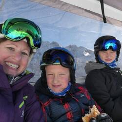 Weil Alina und ich so lange anstehen mussten, war inzwischen meine Schwester mit den Kindern auch schon unten am Lift angekommen und sie haben die Kinder zu uns hoch geschickt.