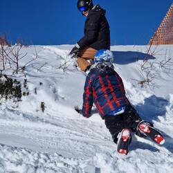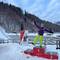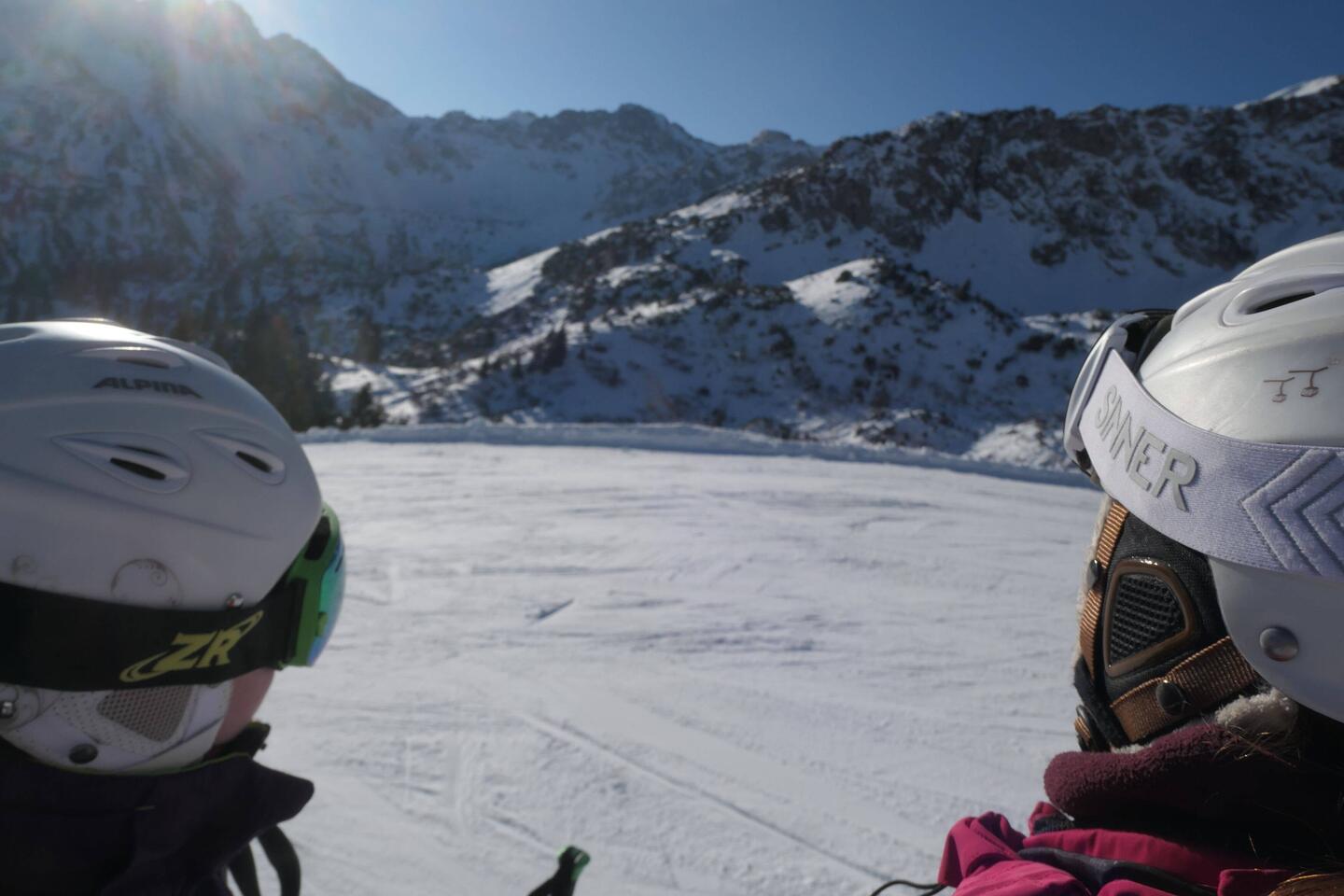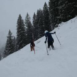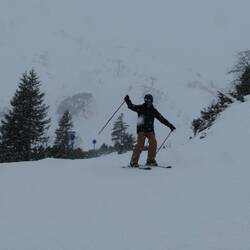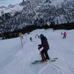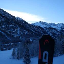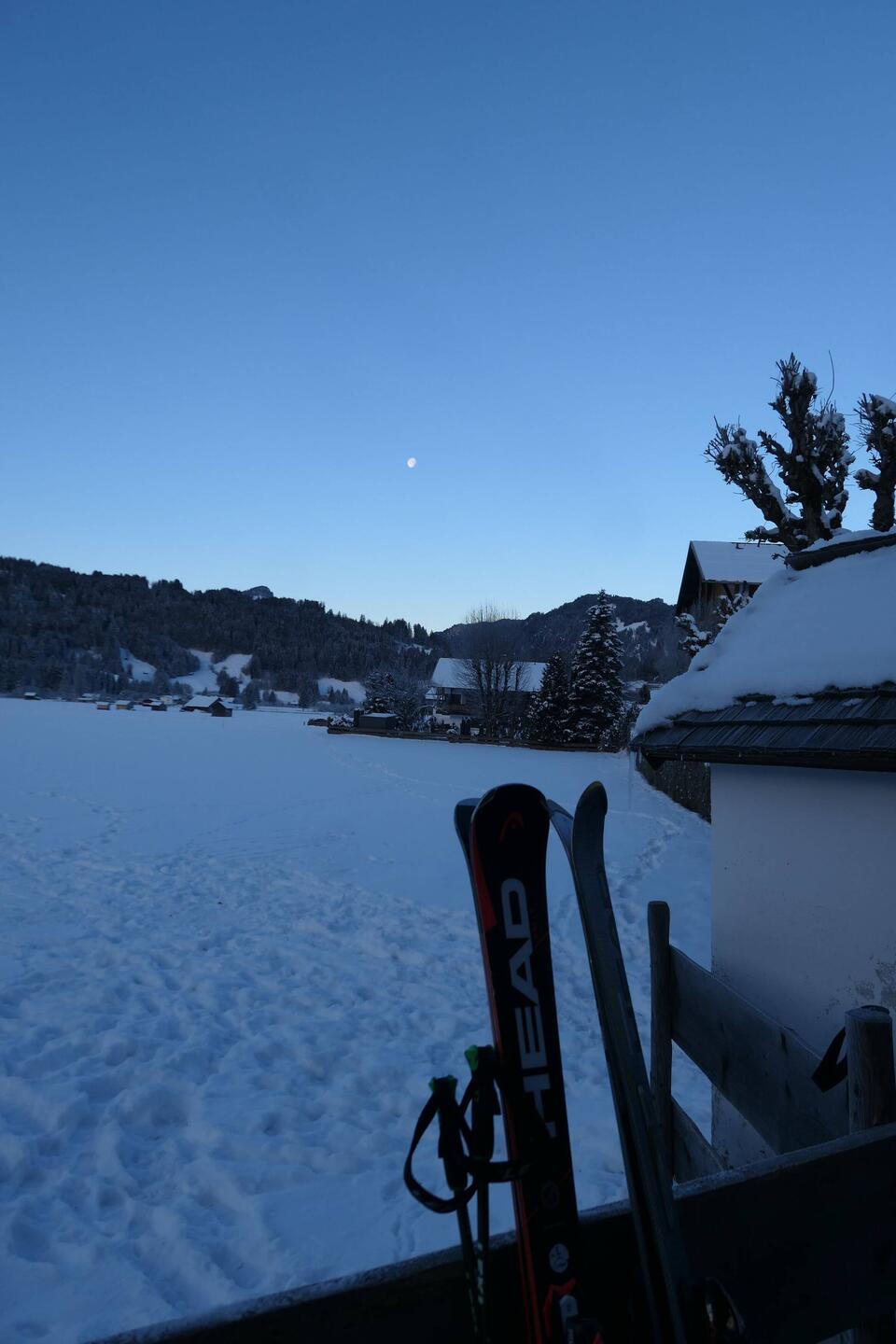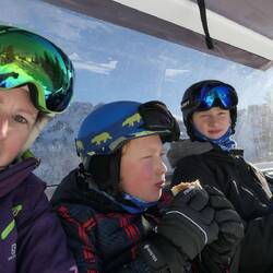 Heute waren wir nach dem Frühstück irgendwie viel zu früh dran. Wir hatten die Skischuh schon an und hatten noch gut 20 Minuten Zeit, bis der Skibus kommt.