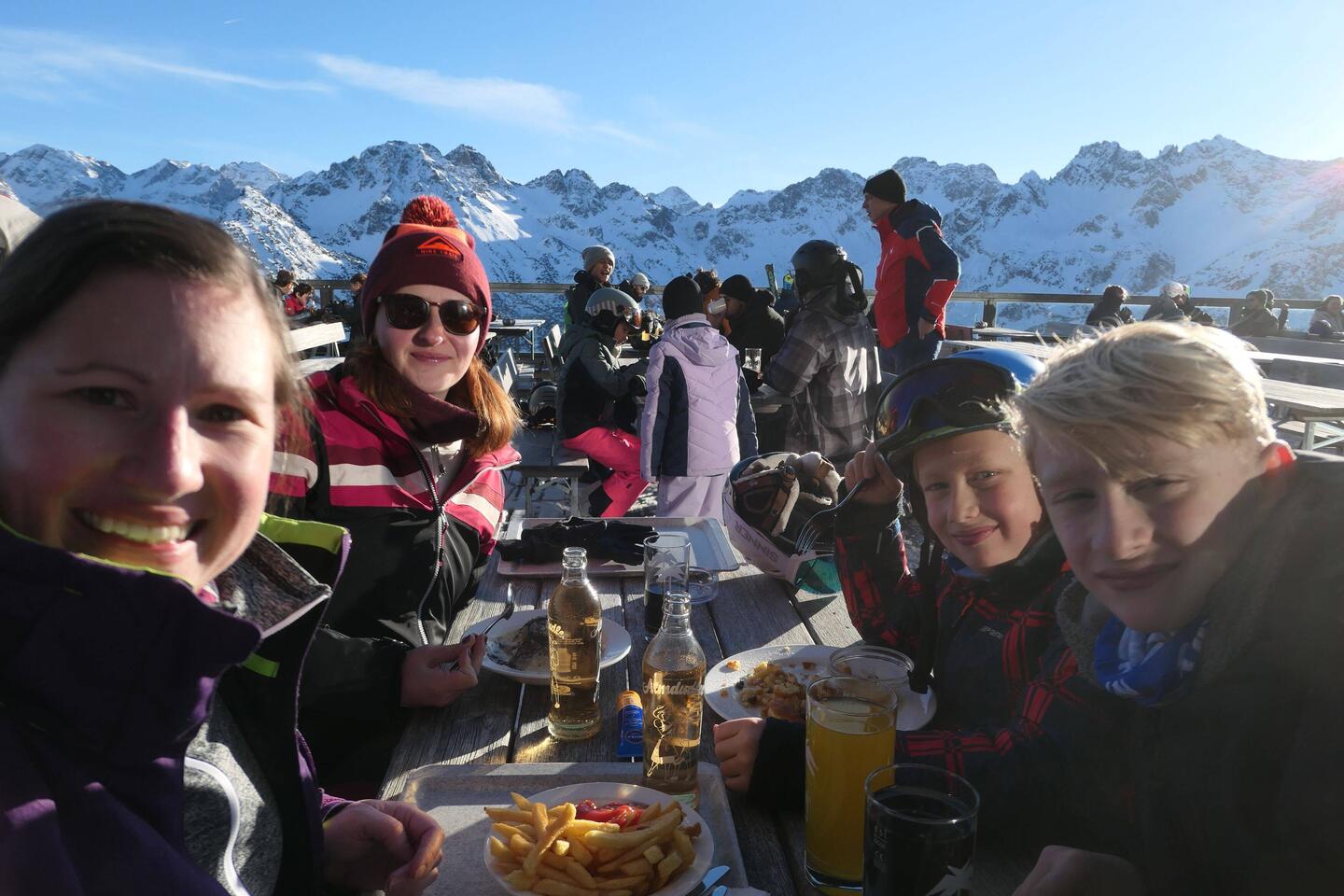 Wir sind ziemlich lange Ski gefahren, bis wir uns gegen 15:00 Uhr doch kurz auf die Hütte gesetzt haben.