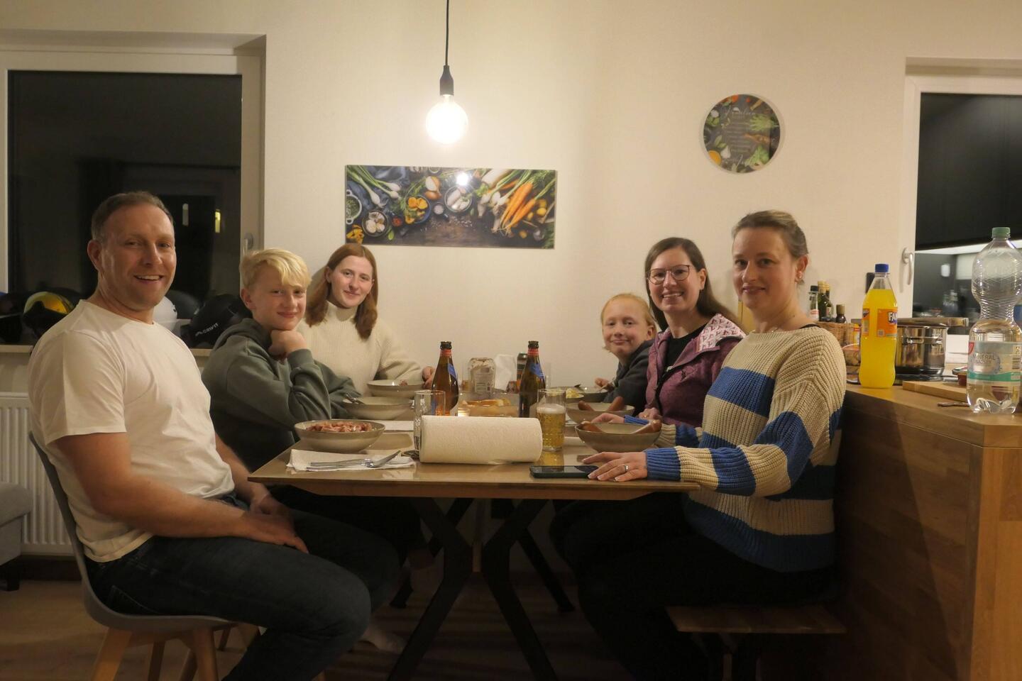 Wir haben alle zusammen zu Abend gegessen, es gab super leckere Nudeln mit Tomatensauce. 😋