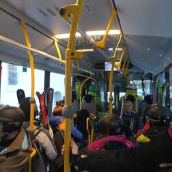 Um 07:30 Uhr gab es Frühstück und um 08:42 Uhr saßen wir schon im Skibus.