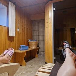 Nach der Piste haben Alina und ich dann unser Hotel bezogen. Zu unsere Freude gab es doch eine Sauna, die ich erstmal vorgetestet habe. Sie war super! 😆