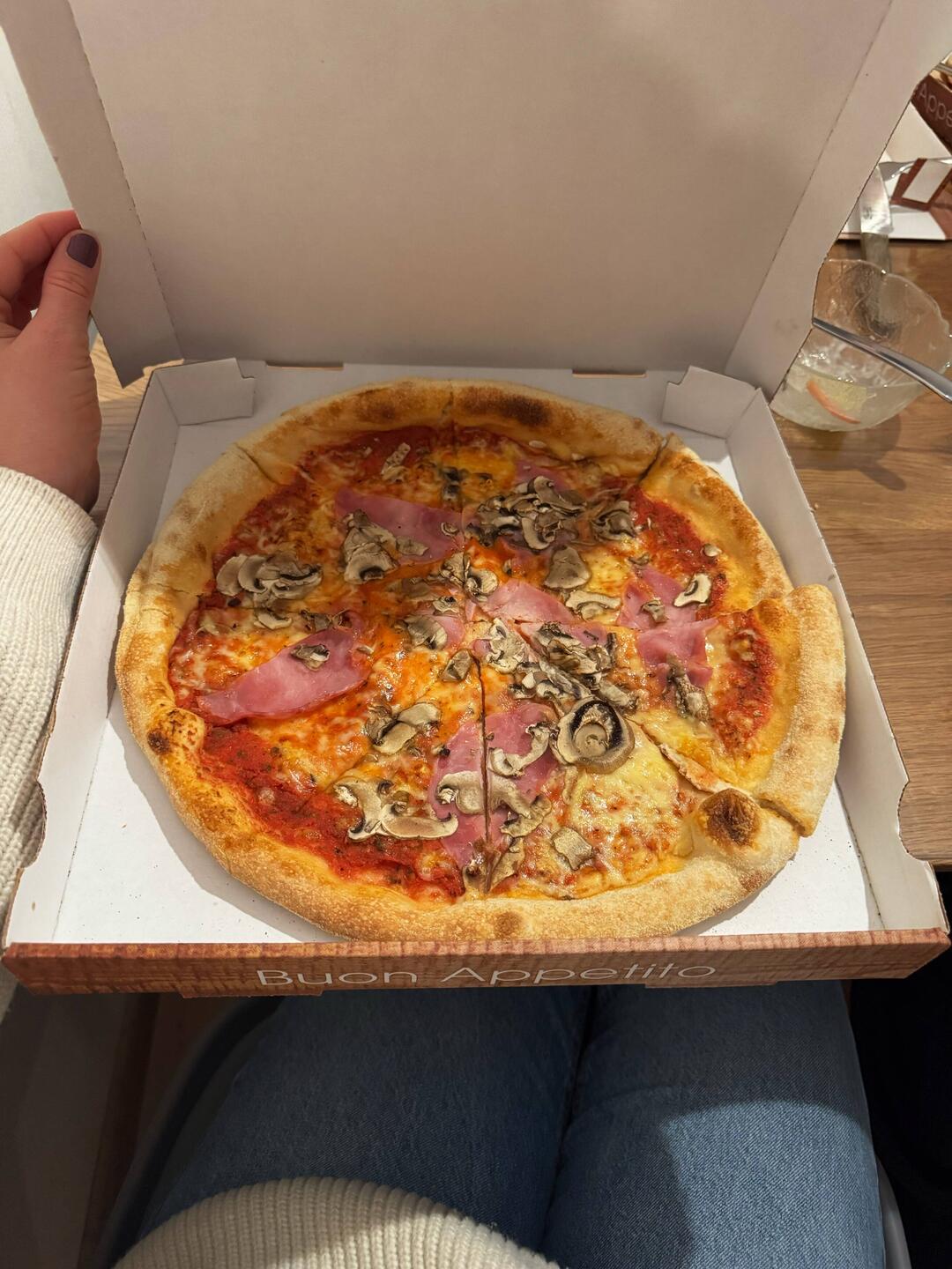 Nach der Sauna haben wir Pizza zum Abholen bestellt und alle gemeinsam, in der Ferienwohnung von Isabelles Schwester & Familie, zu Abend gegessen. Die Pizza war wirklich sehr lecker! 😋