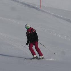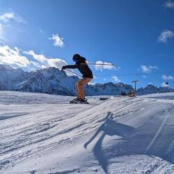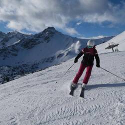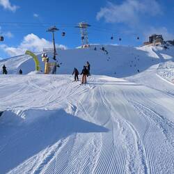 Die Familie Kwanka ist die ersten Abfahrten noch im Funpark beschäftigt, derweil genießen Alina und ich die leeren Pisten in der Sonne.