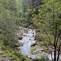 Bei leichtem Nieselregen und mit der Hoffnung auf besseres Wetter sind wir heute entlang der Trettach und weiter ins Oytal gewandert. Der gut ausgebaute Wanderweg führte stets leicht bergauf und warLes mer