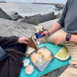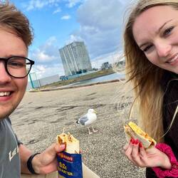 Unser Tag begann mit dem besten Fischbrötchen, was wir je gegessen haben. Genau vor unseren Augen wurde der Hering filetiert und frisch ins Brötchen gepackt. Absolute 11/10! Im Anschluss brachen wirLes mer