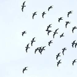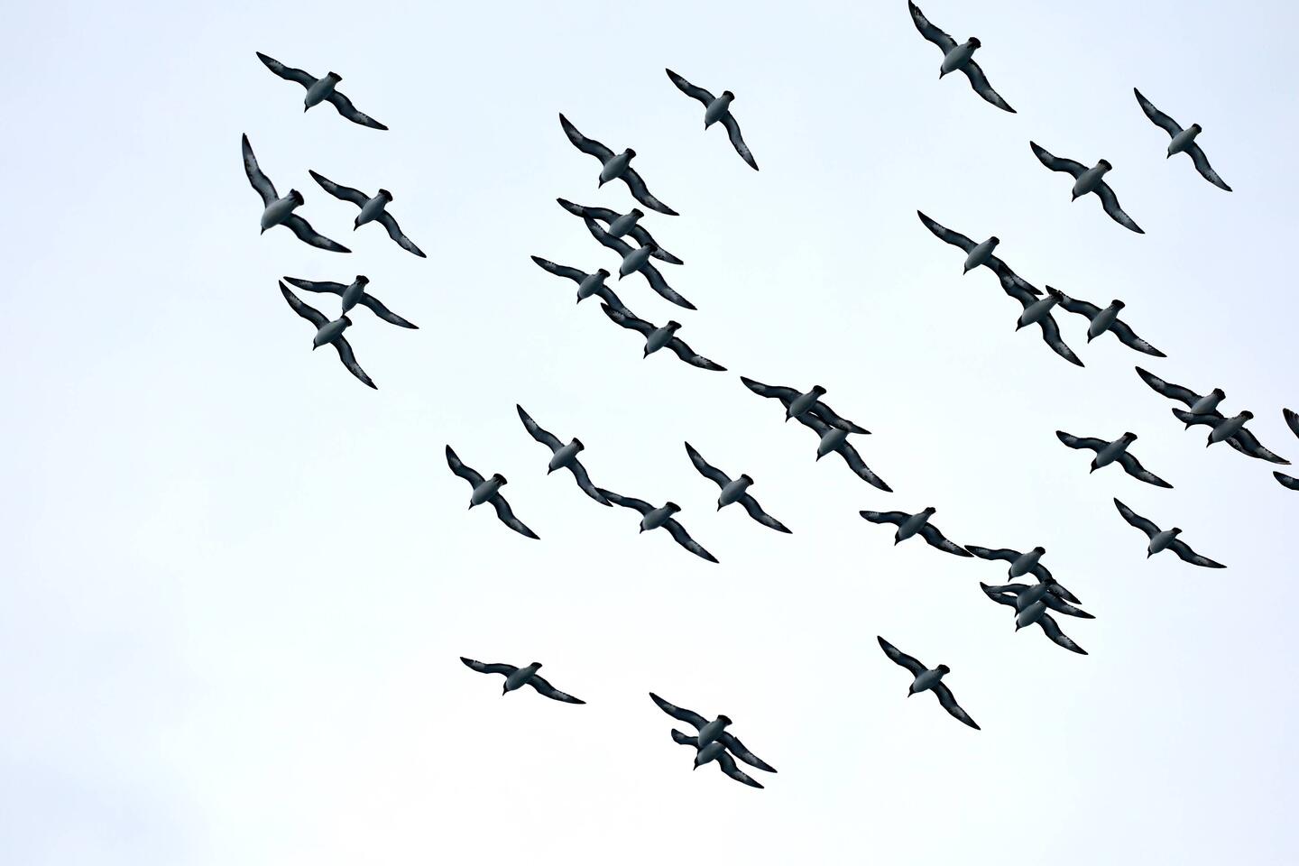 一大群角海燕和南方暴风海燕围绕着我们的船上下飞舞,上演了一场精彩的空中飞行表演。