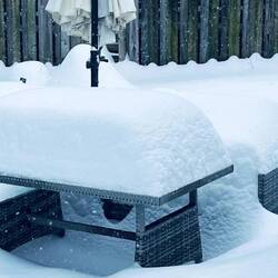 Our flight has been delayed two more times due to heavy snow falls in Ontario area, departure time being pushed from 11:01 to 12:46, then to 13:46.