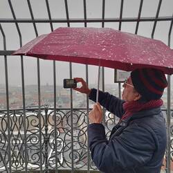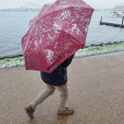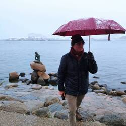 Un poquito de nieve no nos va a parar aunque quizá un copo de nieve nos deje ciegos, ya que vamos con la nieve y el viento el contra en nuestro camino a la estatua de La Sirenita.