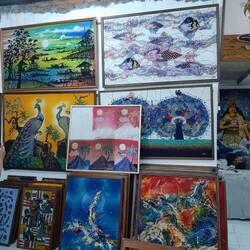 Hier sind wir durch die bekannte Straße Mariobilo hergeschlendert und wurden von „Harry“, einem indonesischen Tourguide angesprochen, der vor einer Mall auf seine Kunden wartete. Er hat uns ein paar Tipps gegeben und uns zu einer einheimischen Batik-Kunstausstellung geführt, die nur noch heute da ist. Der Betreiber Bzw. dessen Galerie machen auch Studetenaustausche mit deutschen Kunsthochschulen. Die Batik-Bilder werden mit einer einzigartigen Technik auf Stoff gemalt und anschließend gewachst.