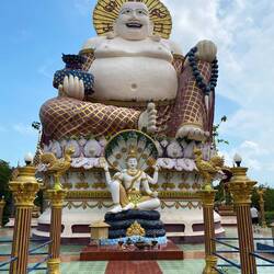 Also Los ging es. Erstmal steuerten wir die beiden Tempel: Big Buddha Temple (Wat Phra Yai) und Wat Plai Laem im Norden der Insel an. Nach gut 2h, vielen coolen Eindrücken/Fotos und einen Früchteshake. Ging es über die Tourihochburg: Chaweng zum Lamai Beach.