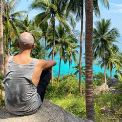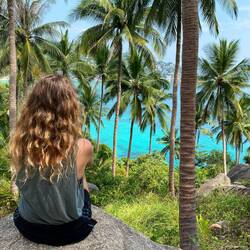 Der Weg dorthin ging über steile Berge nach oben und unten. Eine kleine Abenteuerfahrt mit dem Roller. Der Strand Ao Tanote Beach war gut besucht, aber auch total schön. Es gab einen großen Felsen im Wasser, den einige hochkletterten und von hier aus ins Wasser sprangen.