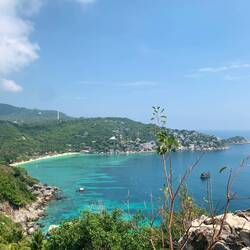 Auf der Straße Richtung Süden fuhren wir an einigen gemütlichen Restaurants und Bars vorbei. Unser erstes Ziel war der Freedom Beach. Hier gab es auch einen Viewpoint. Der Freedom Beach kostete uns 50 Baht Eintritt. (umgerechnet 1,40€) Hier war der Eintritt zum Viewpoint und zur Taa Toh Lagoon inbegriffen. Wir wanderten als erstes zum Viewpoint hoch, wobei man eher klettern sagen muss, denn der Weg nach oben geht über große Felsblöcke. Oben angekommen hatten wir eine unglaubliche Sicht über den südlichen Zipfel von Koh Tao mit den beiden Strandbuchten links und rechts. Nachdem wir den Ausblick genossen haben, ging es wieder nach unten. Eigentlich wollten wir zum Freedom Beach, aber wir sagen schon von oben, wie voll der Strand war. Wir wichen aus auf die ruhigere Taa Toh Lagune.