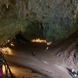 Auf die Höhle freuen wir uns schon seit einiger Zeit, denn in dieser Höhle gab es vor fast 5 Jahren eine große Rettungsaktion von 12 Schüler einer Fußballmannschaft und ihrem Trainer. Die Rettung grenzte an ein Wunder, denn die Schüler und der Trainer waren für 12 Tage in der Höhle gefangen. Wer die Geschichte nicht kennt. Die Gruppe ist während der Regenzeit, natürlich im Trockenen, in die Höhle gegangen. Sie wurden von heftigem Monsunregen überrascht und kamen dort nicht mehr raus. Taucher holten sie durch eine mehrtägige Rettungsaktion raus. An der Rettung waren internationale Taucher, vor allem zwei Engländer und die Thai Navy Truppe beteiligt.