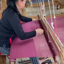An einem Webstuhl wird die “Seide” dann zu einem festen Stoff gespinnt. Es war interessant zu sehen, wie die Frauen hier arbeiteten. (Im Video ist der Webprozess zu sehen)