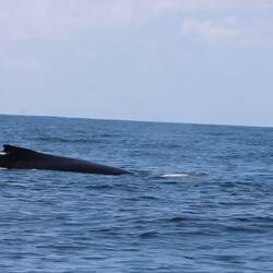 Wir machten uns fertig für das Wasser. Wir warteten den richtigen Zeitpunkt ab, als die beiden Wale hinter uns waren. Langsam ließen wir uns in den Wasser gleiten. Und dann sahen wir die Wale auf uns zu kommen. Die Mitarbeiterin rief uns zu, wir sollen alle mit dem Kopf unter Wasser. Doch leider waren einige aus der Gruppe etwas hektisch im Wasser und die Sicht so schlecht, dass wir die Wale im Wasser nicht sahen. Innerhalb von Sekunden sind die Wale an uns vorbei geschwommen. Wir gingen wieder an Board. Wir sahen noch einige Wale. Hinterher sogar noch eine größere Walgruppe, wo das Männchen jedoch von den Weibchen nicht “angenommen” wurde und sich von der Gruppe trennte. Das war interessant anzuschauen. Ins Wasser ging es aber leider für uns an diesem Tag nicht mehr.