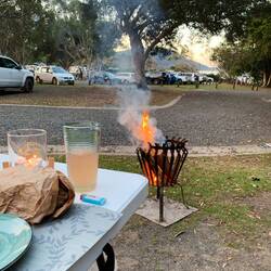 Wir verbrachten eine Nacht auf einem wunderschönen Campingplatz direkt am Meer mit schönem Lagerfeuer.