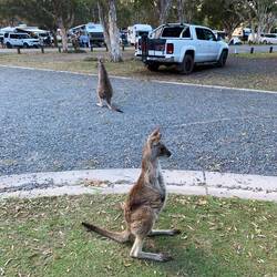 Nach ca. 5h Fahrt und einer kurzen Mittagspause in Coffs Harbour erreichten wir den Campground gegen 16 Uhr und wurden auch direkt von 2 Kängurus begrüßt. Sogar eine Mama mit ihrem Baby (die Aussies sagen zu einem Känguru und Koala Baby “Joey”). 🥰