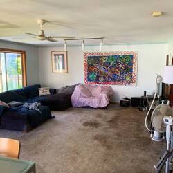 Wir haben heute nochmal 4h alles geputzt aber es wurde nicht besser. Eher haben wir neben dem ganzen zugestellt, dreckigen Zimmern noch viel scheiße festgestellt z.B ist der ganze Teppichboden zugepisst. Das erklärt auch den bestialischen Gestank. Einfach nur abartig Messi!