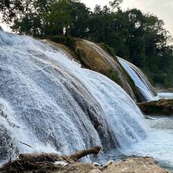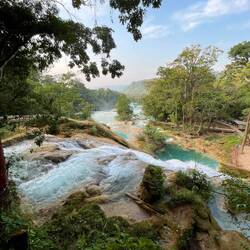 Auf deutsch heißt das Wasserfälle des blauen Wassers. Davon gibt es hier über 500 einzelne. Die leuchtende Farbe stammt von dem hohen Mineraliengehalt im Wasser.