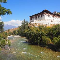 Heute Morgen vor dem Flug haben wir noch den Dzong in Paro besichtigt.