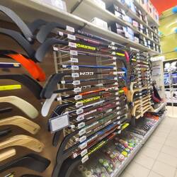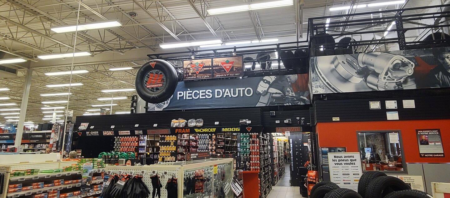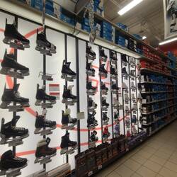 Hardware and tire store. It is in Canada so ice skates, hockey sticks, and hockey equipment galore.