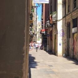 Finally made it downtown Barcelona in the gothic Quarter! Beautiful alleyways! Stopped for some tapas and wine! 🍷 Salute!