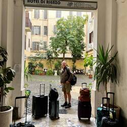Got settled into our AirBnB, after traveling from Civitavecchia, and walked around the corner on our way to dinner only to meet Mullet-dude, a person we had seen daily on the cruise-ship.😄