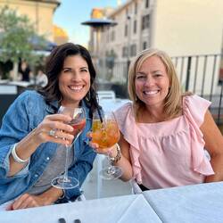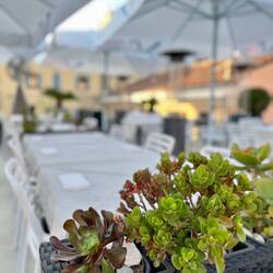 I could not end our first full day in Rome without dedicating a page to our evening...What an idyllic spot to sop for some delightful refreshments! Our rooftop locale hit all the right notes untilLeia mais