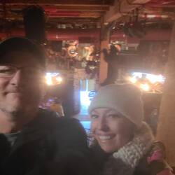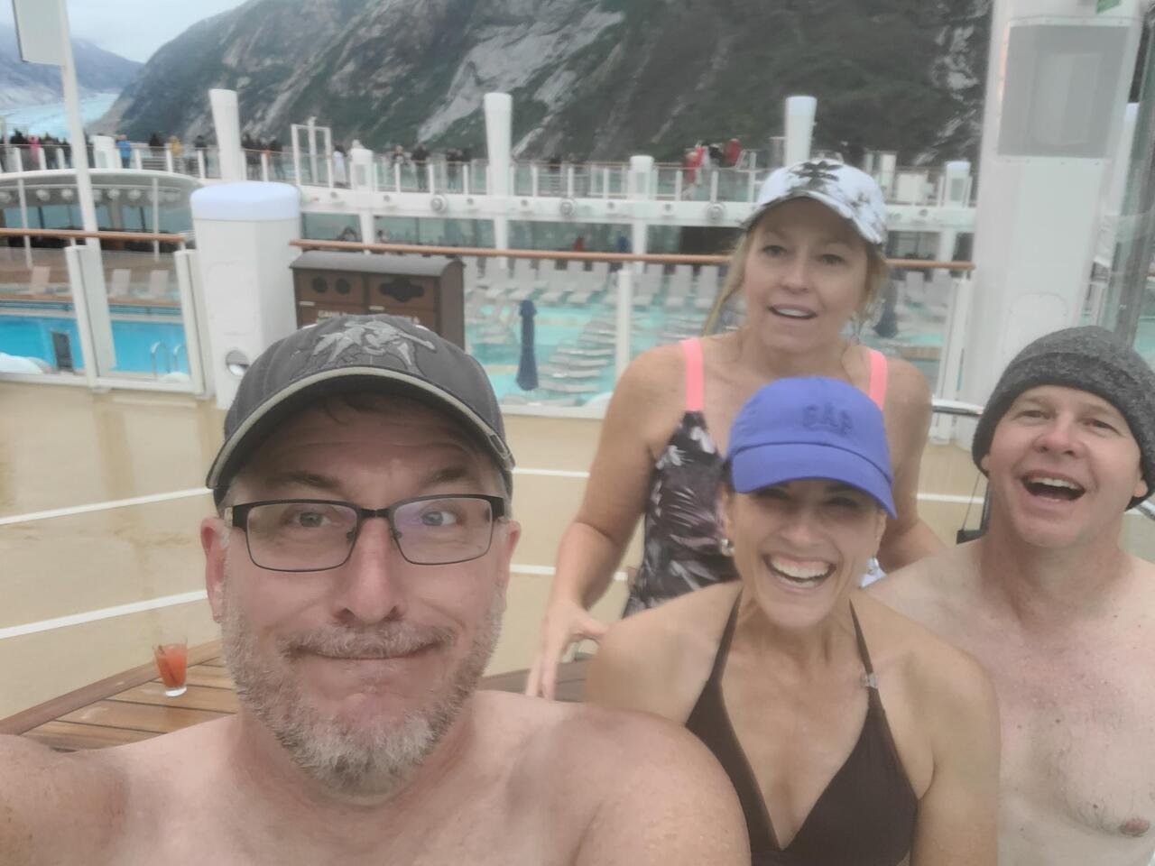 Wow! What do you do when you see icebergs floating by, and a very large chunk of glacial ice? Get in a hot tub! Duh!😄