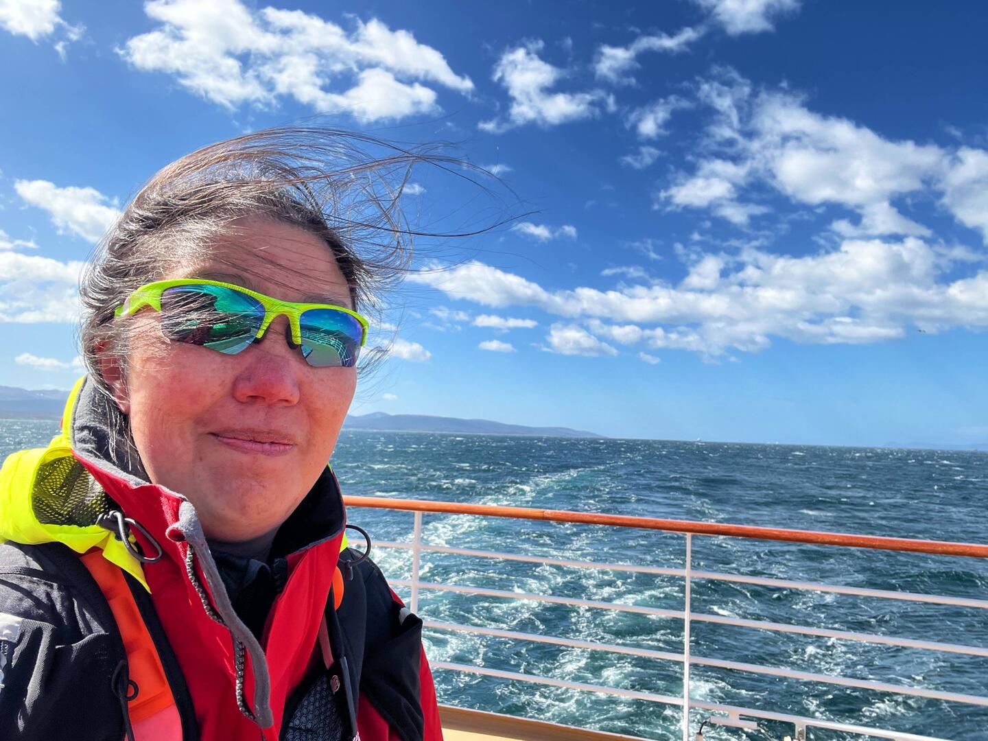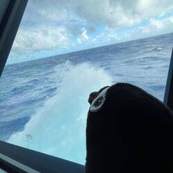 10-12 ft seas, gentle wind. Still chilly, but the sun is out and it’s nice. Looking for birds… hope to see an Albatross… think birds!