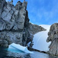 Plan was to pass through the Lemarie Channel to Port Charcot. Unfortunately there was a massive ice berg blocking the exit. Octantis made an amazing u-turn in a very narrow channel.