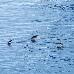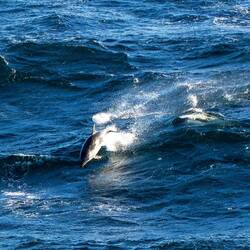 Thought they were Penguins porpoising in the waves, but upon closer inspection they were dolphins!