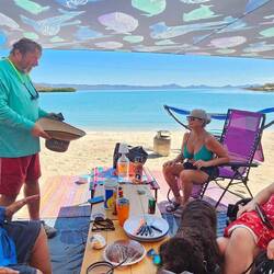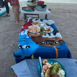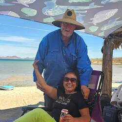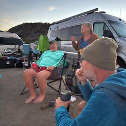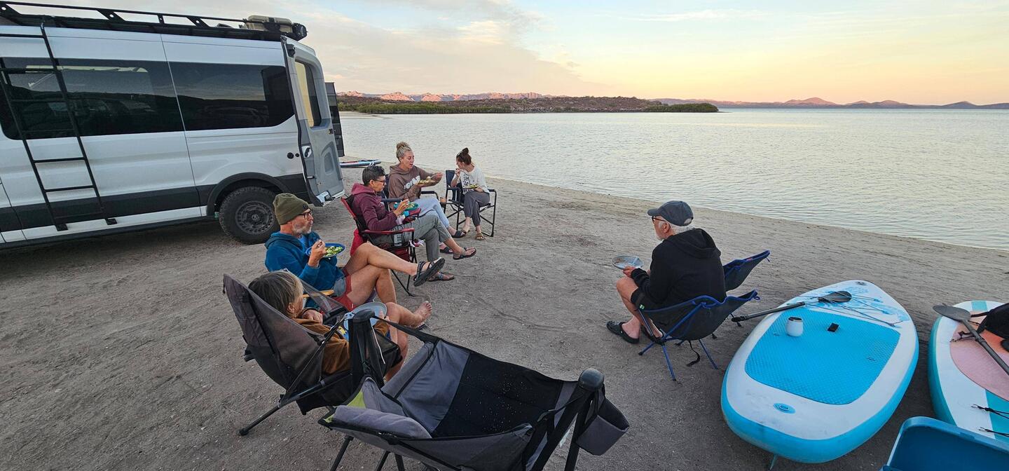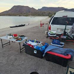 New Baja beach friends (Maia, Chelsea, Greig, Lisa, Sharon, Luis, Ruby, Don, Debby) pot luck on the beach⛱️. Dinner was Halibut, Shrimp, Scallops, Cowboys beans, salads, and Jack Johnson BahaRead more