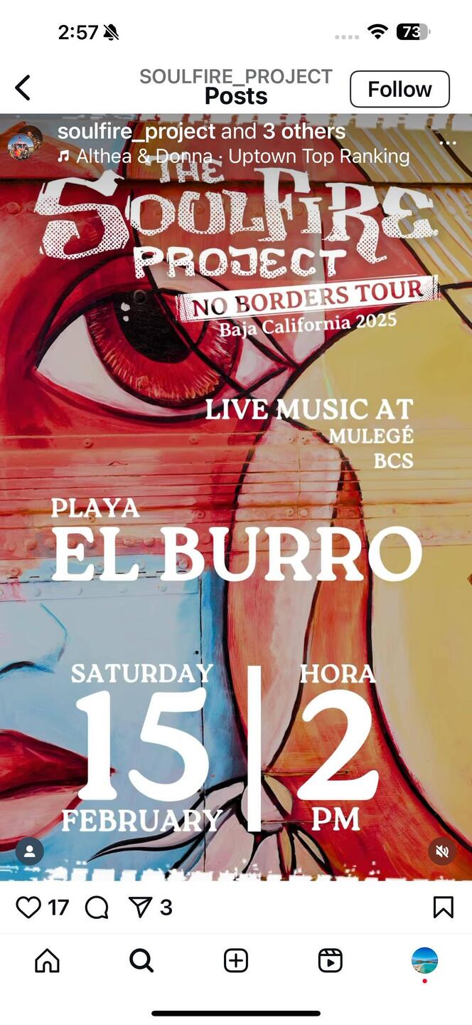 Terrific music at nearby Playa el Burro by the legendary Soulfire Project & their iconic red bus! Second year in a row, we were able to groove to their unique blend of indigenous & Mexican music. MetRead more