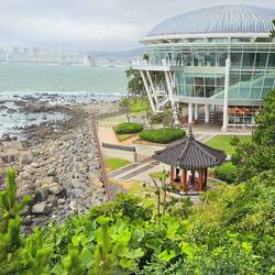 Nous voici en Corée! Visite d'un des plus beaux temples de Busan bordé par la mer, le temple Haedong Yonggungsa et ses pagodes décorées de lions. Ensuite route vers la plageMeer informatie
