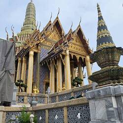 Nous voici en Thaïlande! Départ tôt pour la visite du Grand Palais, construit en 1782 et qui inclut plus de 100 bâtiments et pavillons. Visite du temple du Buddha d'Émeraude,Meer informatie
