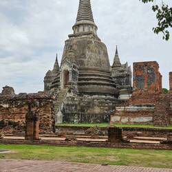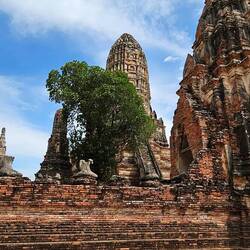Départ pour Ayutthaya, ancienne capitale du royaume du Siam, pour visiter ses multiples ruines qui font partie du patrimoine de l'UNESCO. On admire la tête de Buddha à WatMeer informatie
