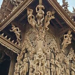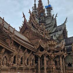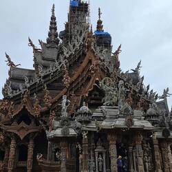 On part pour Pattaya dans la province de Chonburi où l'on admire le plus grand Buddha du monde (Khao Chi Chan) à flanc de montagne. Puis on s'arrête au Sanctuaire de la VéritéMeer informatie