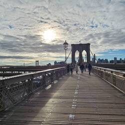 La journée commence avec une croisière commentée sur la rivière Hudson pendant laquelle on peut admirer la statue de la Liberté ainsi qu'Ellis Island. Promenade sur l'un des plus impressionnants ponts suspendus de New York, le Brooklyn Bridge. On visite le FOA Schwarz, Harry Potter Shop et on termine l'après-midi avec le musée Friends.